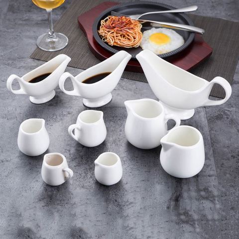 Mini jarras de leche de cerámica creativas blancas puras: con asa para café, leche, salsera de restaurante y vajilla especial