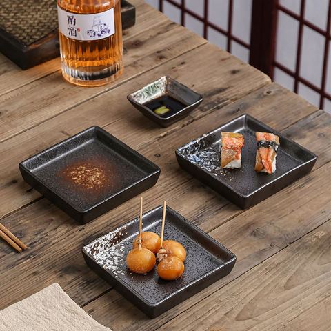 Plato cuadrado de cerámica japonés, diseño ecológico, apto para lavavajillas, grado alimenticio, olla caliente, condimentos, comida, aperitivos, platos de inmersión