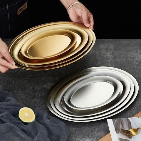 Plato de pescado en forma de huevo Vintage, bandeja de queso y verduras ovalada profunda de acero inoxidable coreano, plato de Pasta grueso