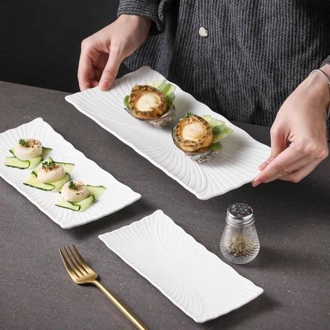 Plato de cena Rectangular de porcelana blanca pura para sushi comida occidental barbacoa bistec y aperitivos en restaurantes