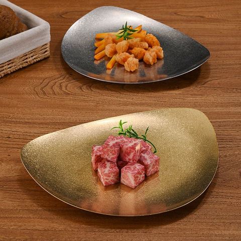 Bandeja de preparación de acero inoxidable 304 Vintage, plato de cocina occidental de forma Irregular creativa, pastel de postre de bistec a la moda