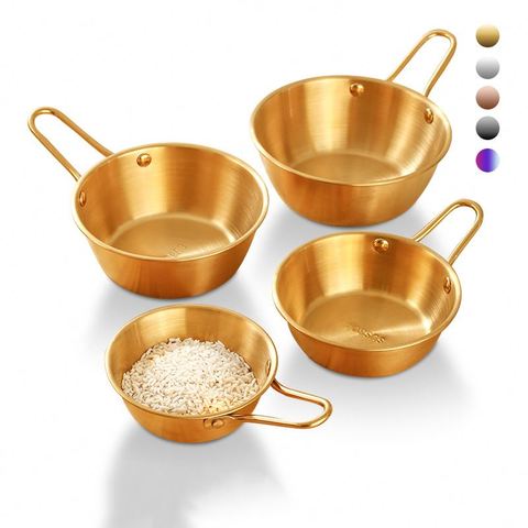 Cuenco dorado coreano 200 ml 400 ml 600 ml 304 plato de condimento de acero inoxidable cuenco de vino de arroz con asa cuencos de inmersión de olla caliente