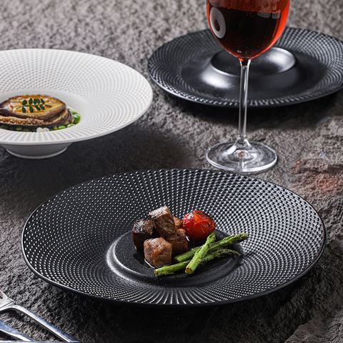 Juego de vajilla occidental de cerámica mate en blanco y negro de Color sólido, placas de cargador de personalidad de Hotel para Pasta de comedor para restaurantes