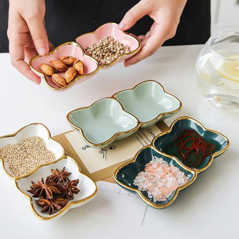 Plato de salsa de cerámica esmaltada de 2/3 compartimentos de estilo japonés premium-Rectangular, seguro para alimentos para restaurante de hotel