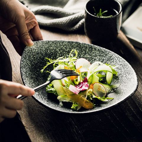 Platos y cuencos de cerámica con forma de onda nórdica-Artículos duraderos con borde irregular de 22,5 cm