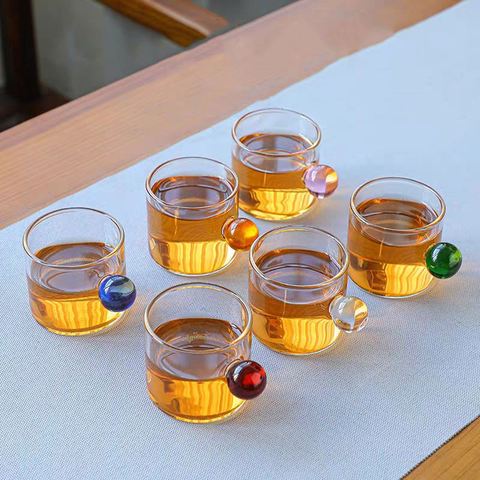 Taza de cristal con mango de bola redonda colorida-Taza de leche de té para el hogar de una sola capa transparente bonita de 120ml