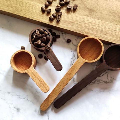 ช้อนตวงไม้วอลนัทสีดำด้ามจับยาวสำหรับเมล็ดกาแฟชาและเครื่องปรุงรสโลโก้ที่กำหนดเอง